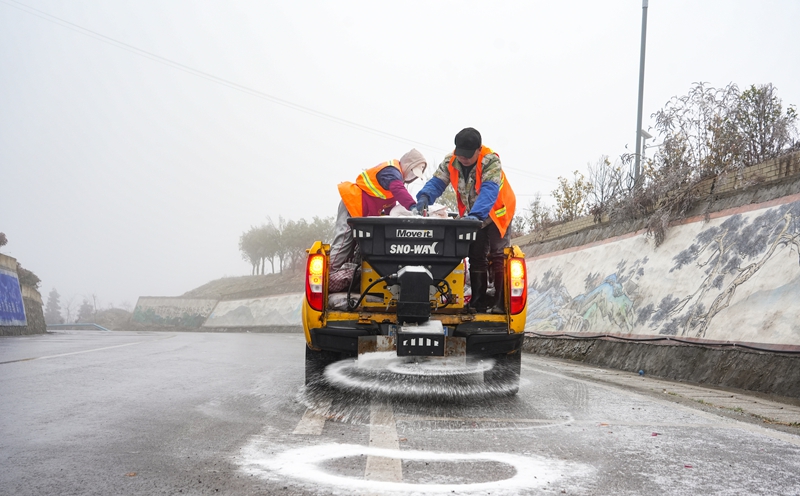 2026年1月21日,纳雍县交通运输局农村公路养护核心工做人员正在撒盐除冰。