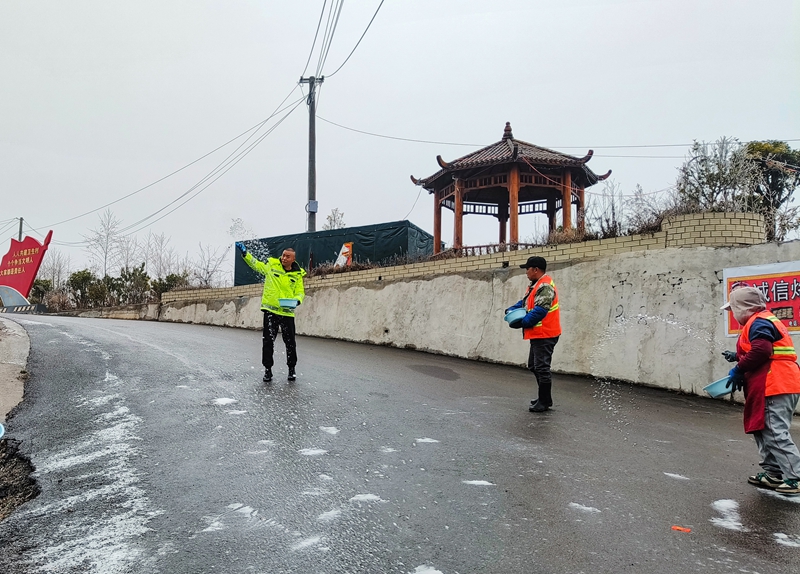 贵州纳雍:撒盐除冰保通顺